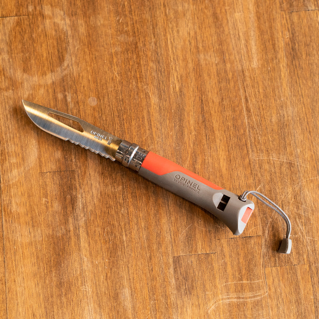 アウトドア仕様のオピネル。ステンレス製で折りたたみ式、ハンドル部分は丈夫でグリップしやすく力を入れても滑りにくい樹脂製。オピネルは個人的に一番使いやすいサイズ感の#8サイズを扱っています。